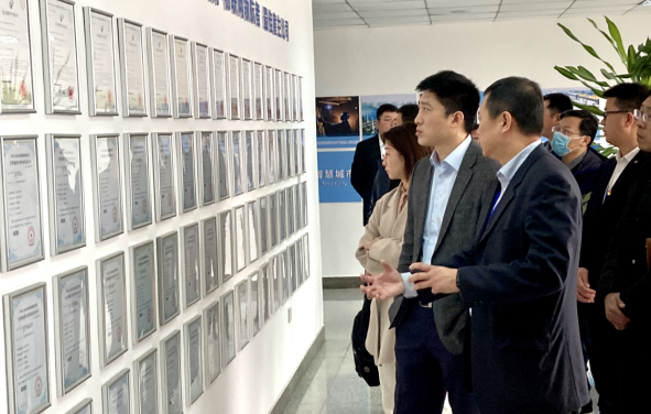 董事長高藝(左)陪同領導參觀公司