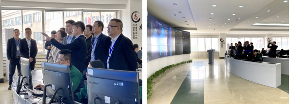 隨后,李總一行考察了達能電力數據服務平臺,高總為李總一行講解大數據支撐下的電力運維、在線監測技術應用,現場演示監測情況,介紹在線監測避免災害的案例,觀看用戶用電數據,雙方圍繞用戶側大數據、運維市場開拓、客戶服務等進行交流。