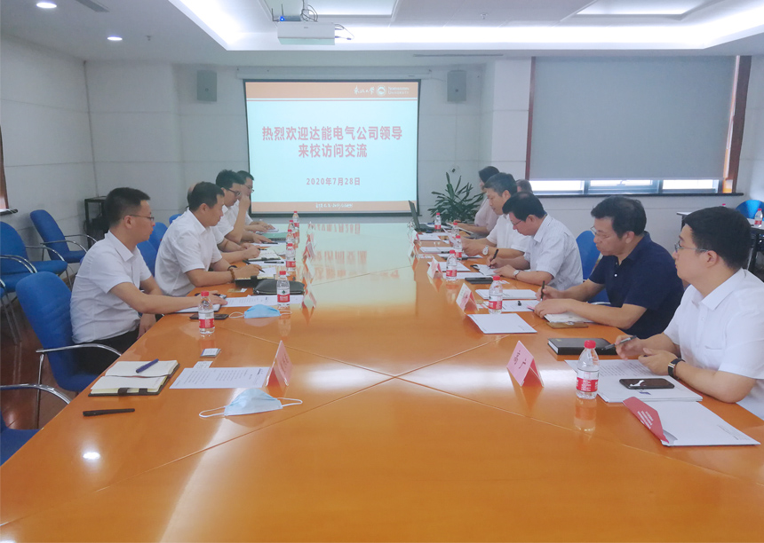 7月28日,由達能電氣董事長高藝親自帶隊,資本總裁李順、科技發展部、研發中心負責人一行前往東北大學就雙方開展校企合作進行交流洽談。此次合作交流,雙方高度重視。東北大學黨委常委、副校長、博士生導師孫雷、對外聯絡與合作處處長李鶴、科學技術研究院工業合作部部長王裕民、對外聯絡與合作處副處長高廣、信息科學與工程學院教授楊東升、對外聯絡與合作處合作辦主任李佳佳參加會議。會議在東北大學綜合樓1401會議室舉行。