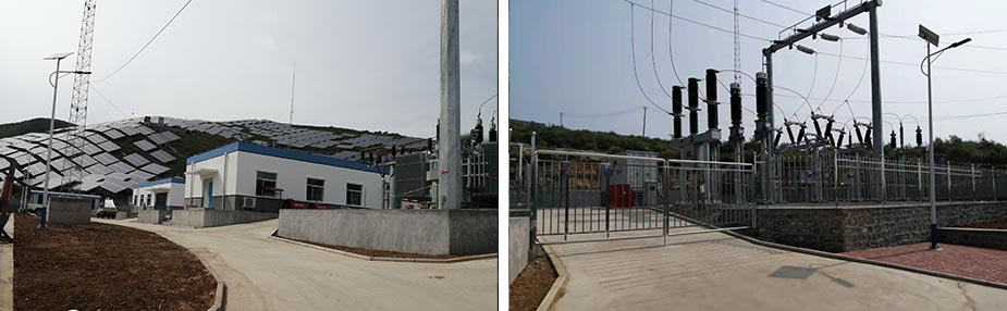本項(xiàng)目采用分塊發(fā)電、集中并網(wǎng)方案,整個(gè)發(fā)電系統(tǒng)由16個(gè)約1.25MWp光伏發(fā)電子系統(tǒng)組成,每個(gè)1.25MWp電池子方陣采用2臺(tái)630kW逆變器和1臺(tái)1250KVA箱式變壓器。每方陣由太陽(yáng)能電池組件串并聯(lián)而成,太陽(yáng)能電池陣列輸入光伏方陣初級(jí)防雷匯流箱、直流配電柜后,通過(guò)逆變器逆變,箱式變壓器升壓后接入升壓站,經(jīng)過(guò)主變進(jìn)行二次升壓66KV后送出T接66KV團(tuán)農(nóng)線,送至220KV團(tuán)山子變系統(tǒng)。